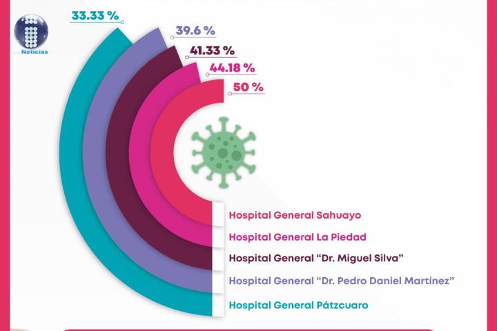 Lo anterior derivado del comportamiento epidemiológico por COVID-19, donde el nosocomio con mayor demanda es el General de Sahuayo con 50 puntos porcen... Ver más...