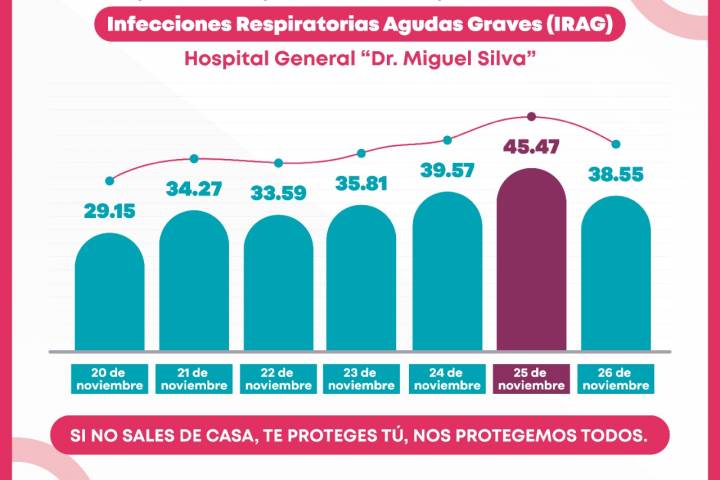 NOTICIAS 27/11/2020Al alza, ocupación de área COVID-19 del Hospital CivilLa SecretarÃa de Salud de Michoacán (SSM), informa que la ocupación de las camas destinadas para la atención de Infecciones Respiratorias Agudas Graves (IRAG), en el Hospital General "Dr. Miguel Silva", se mantiene al alza, ubicándose este jueves 26 en un 38.55 por ciento.