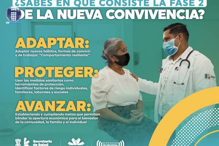NOTICIAS 10/11/2020Adaptarse, Protegerse y Avanzar, acciones clave para enfrentar el COVID-19En el marco de la segunda fase de la Nueva Convivencia que anunció esta mañana el Gobernador Silvano Aureoles Conejo para hacer frente al COVID-19, las acciones clave son: Adaptarse, Protegerse y Avanzar.