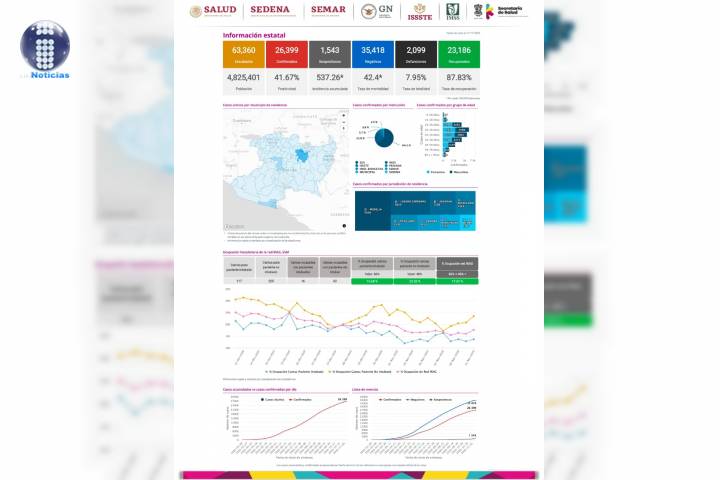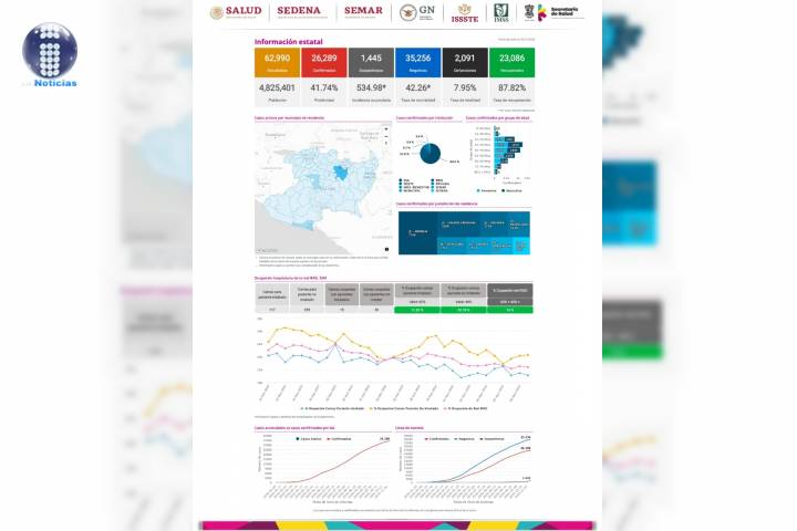 NOTICIAS 11/11/2020Se eleva a 2 mil 99 defunciones por COVID-19 en MichoacánEn la Unidad de Inteligencia Epidemiológica y Sanitaria (UIES), se han recibido un total de 63 mil 360 notificaciones de enfermos de vías respiratorias a descartar coronavirus, 35 mil 418 cumplieron con definición operacional resultando negativas a COVID-19, es decir, no tienen el virus.