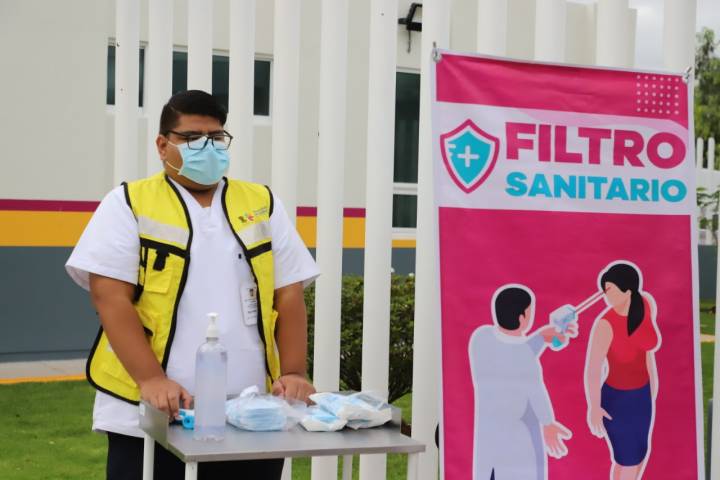 Como parte de las medidas básicas de higiene para la prevención y contención del virus COVID-19, se hace promoción de la importancia del uso de gel antibacterial, por medio de la instalación de filtros sanitarios.