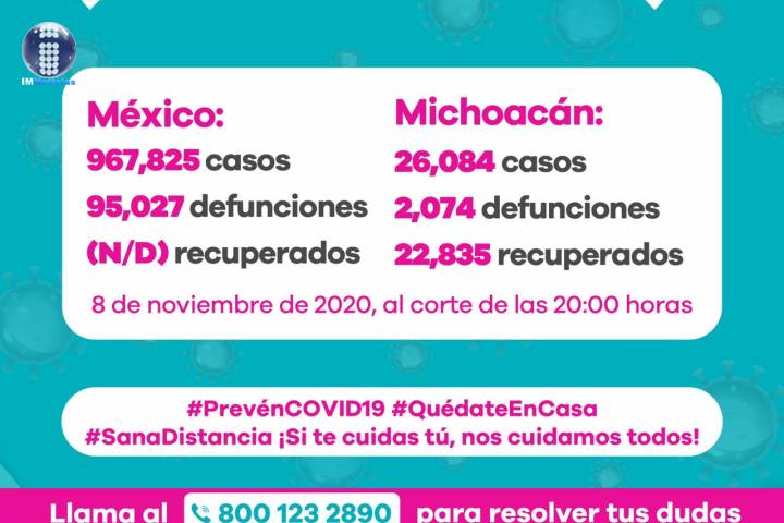 NOTICIAS 07/11/2020Son 2 mil 61 defunciones por COVID-19 en Michoacán
