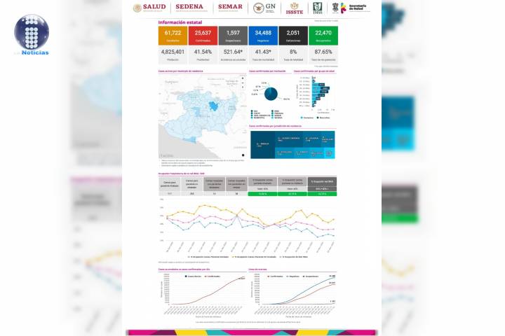 NOTICIAS 05/11/2020Michoacán, con 2 mil 51 defunciones por COVID-19En la Unidad de Inteligencia Epidemiológica y Sanitaria (UIES), se han recibido un total de 61 mil 722 notificaciones de enfermos de vías respiratorias a descartar coronavirus, 34 mil 488 cumplieron con definición operacional resultando negativas a COVID-19, es decir, no tienen el virus.