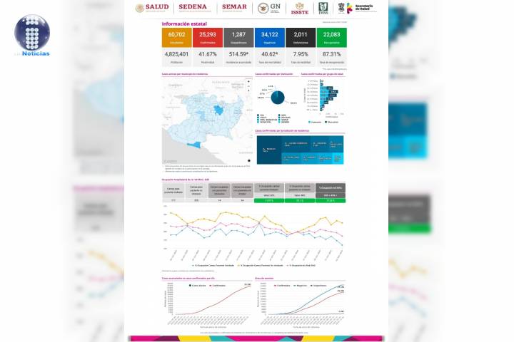 NOTICIAS 01/11/20202 mil 5 defunciones en Michoacán por COVID-19En la Unidad de Inteligencia Epidemiológica y Sanitaria (UIES), se han recibido un total de 60 mil 589 notificaciones de enfermos de vías respiratorias a descartar coronavirus, 34 mil 3 cumplieron con definición operacional resultando negativas a COVID-19, es decir, no tienen el virus.