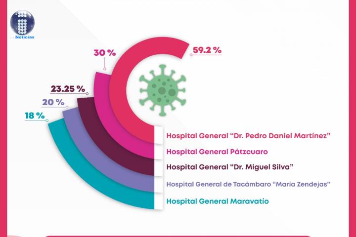 Los nosocomios que mayor demanda registran son los generales de Uruapan, "Pedro Daniel Martínez" con 59.2 puntos porcentuales, Pátzcuaro 30, "Dr. Miguel Silva" 23.2... Ver más...