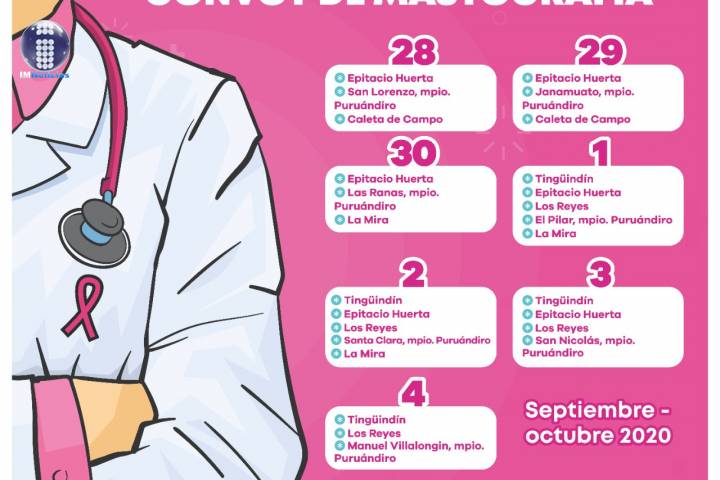 NOTICIAS 27/09/2020Aumenta detección oportuna de cáncer de mama en Michoacán Gracias a las acciones de concientización que realiza la Secretaría de Salud de Michoacán (SSM) a favor de la lucha contra el cáncer de mama, la institución ha realizado en lo que va del año 6 mil 397 mastografías, lo que ha permitido un incremento en la detección y diagnóstico oportuno de este padecimiento.