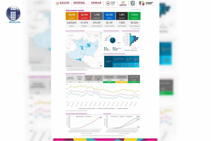 NOTICIAS 25/09/2020Suman 1573 defunciones por COVID-19 en Michoacán En la Unidad de Inteligencia Epidemiológica y Sanitaria (UIES), se han recibido un total de 48 mil 37 notificaciones de enfermos de vías respiratorias a descartar coronavirus, 26 mil 213 cumplieron con definición operacional resultando negativas a COVID-19, es decir, no tienen el virus.