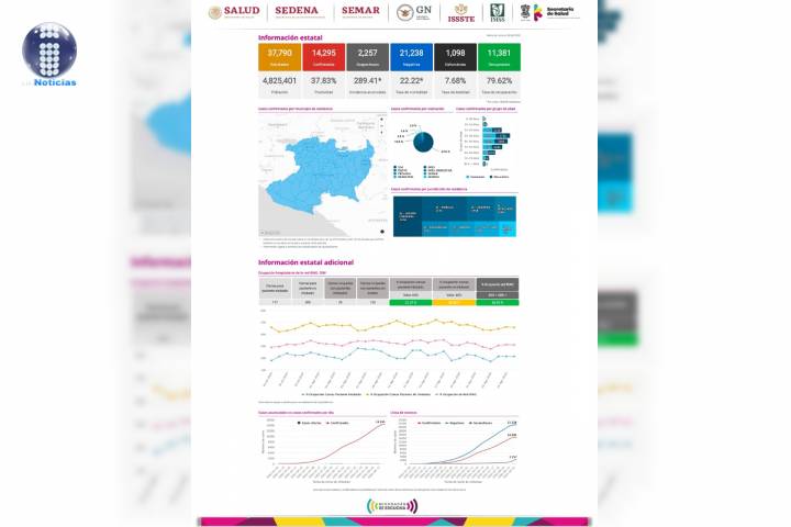 Datos de las autoridades sanitarias, colocan a la entidad en el lugar 12 a nivel nacional, entre los estados con mayores afectaciones por la pandemia, debido a las cifras de enfermos que registran dichos municipios.