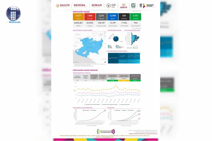 En la Unidad de Inteligencia Epidemiológica y Sanitaria (UIES), se han recibido un total de 23 mil 71 notificaciones de enfermos de vías respiratorias a descartar coronavirus, 12 mil 989 cumplieron con definición operacional resultando negativas a COVID-19, es decir, no tienen el virus.