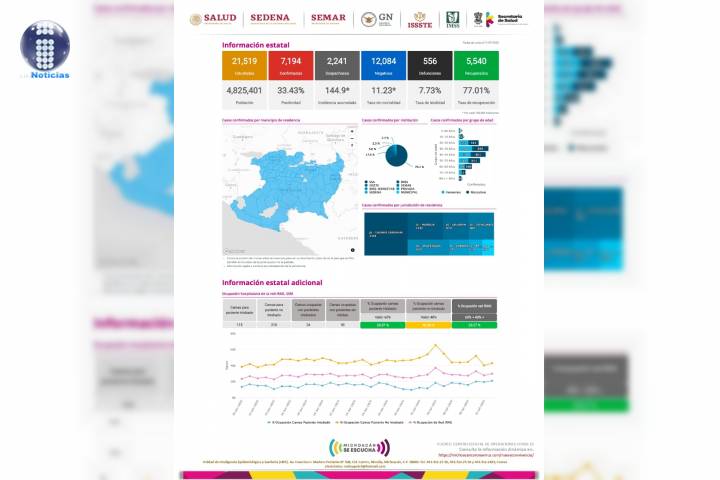 NOTICIAS 10/07/2020Acumula Michoacán 554 defunciones por COVID-19 En la Unidad de Inteligencia Epidemiológica y Sanitaria (UIES), se han recibido un total de 21 mil 276 notificaciones de enfermos de vías respiratorias a descartar coronavirus, 11 mil 990 cumplieron con definición operacional resultando negativas a COVID-19, es decir, no tienen el virus.