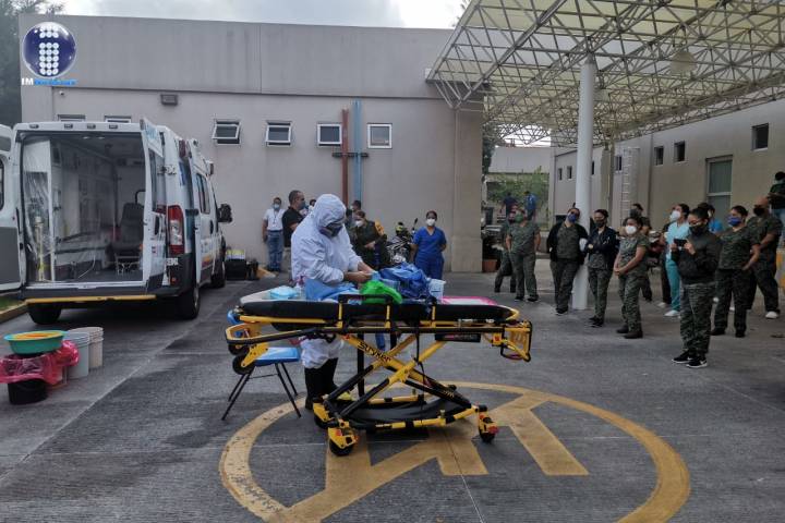 Paramédicos del Centro Regulador de Urgencias Médicas (CRUM), fueron los encargados de impartir la instrucción sobre el uso adecuado del equipo de protección personal y descontaminación al retirarlo.
