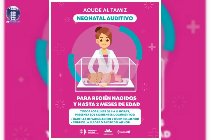 NOTICIAS 03/07/2020Prueba de Tamiz Neonatal Auditivo, los lunes en el Hospital Infantil Debido a la contingencia por COVID-19 y respetando la sana distancia, en el Hospital Infantil "Eva Sámano de López Mateos", de la SecretarÃa de Salud de Michoacán (SSM), se está realizando el Tamiz Neonatal Auditivo.
