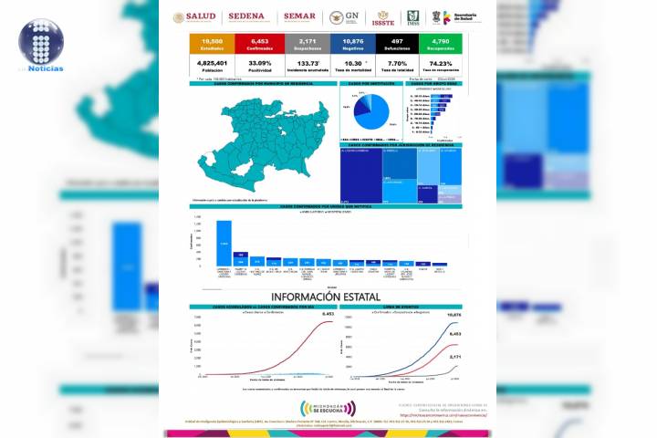 Hasta el dÃa de hoy se han acumulado 6 mil 453 casos confirmados (98 casos nuevos) y 497 defunciones de pacientes pos... Ver más...