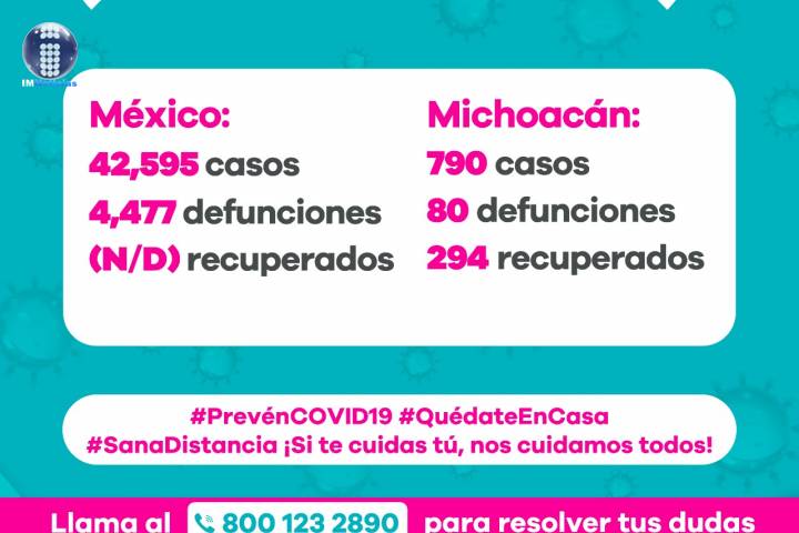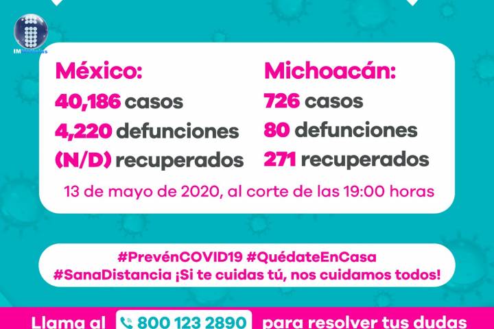 Por ello, la Secretaría de Salud de Michoacán (SSM), exhorta a la población a mantener el distanciamiento social, quedándose en casa e implementando las medidas básicas de higiene que permitan protegerlo de este padecimiento que va en aumento en todo el país.