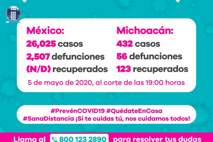 NOTICIAS 04/05/2020Exhorta SSM a michoacanos a realizar último esfuerzo de quedarse en casaDebido a que el mes de mayo está considerado como el mayor pico de la propagación de la pandemia por COVID-19, la Secretaría de Salud de Michoacán (SSM), exhortó a la ciudadanía a realizar un último esfuerzo y mantenerse en sus hogares, además de no bajar la guardia con las medidas básicas de higiene, lo que permitirá contener los contagios por este padecimiento.
