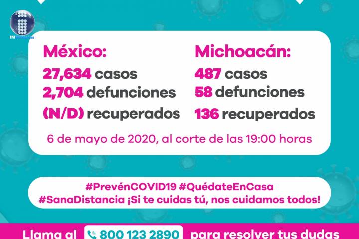 NOTICIAS 06/05/2020Suman 58 defunciones por COVID-19 en Michoacán En la UIES ESTATAL, se han recibido un total de 2 mil 533 notificaciones de enfermos de vías respiratorias, a descartar coronavirus, 1 mil 700 cumplieron con definición operacional resultando negativas a COVID-19, es decir, no tienen el virus.