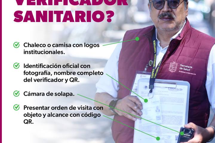 NOTICIAS 19/03/2025Identifica a los verificadores de Coepris para evitar fraudes: SSMLa Comisión Estatal para la Protección contra Riesgos Sanitarios de Michoacán (Coepris) informa a la población y a los establecimientos comerciales sobre cómo identificar correctamente a las o los verificadores sanitarios autorizados, con el objetivo de prevenir fraudes y evitar caer en manos de falsos inspectores.