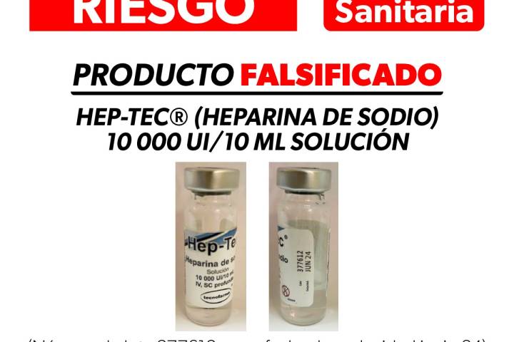 NOTICIAS 12/03/2025Alerta sobre falsificación del producto Hep-Tec: SSM La Comisión Federal para la Protección contra Riesgos Sanitarios (Cofepris), a través de la Secretaría de Salud de Michoacán (SSM), informa a la población sobre la identificación de producto falsificado Hep-Tec (heparina de sodio) 10 000 UI/10 ml solución.