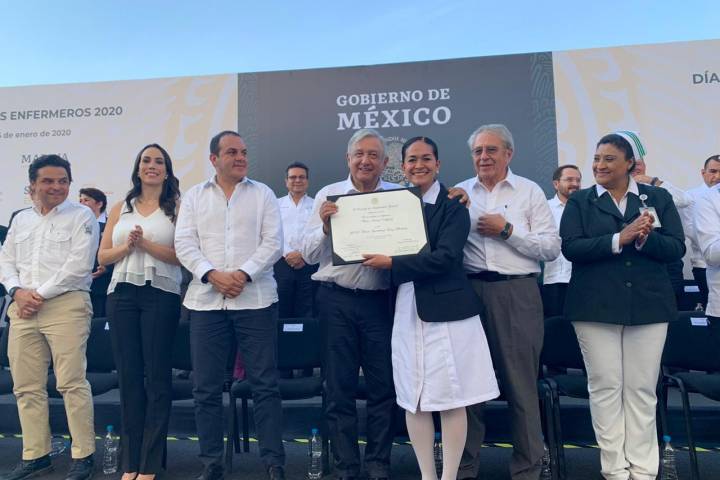 NOTICIAS 06/01/2020Para enfermera de Michoacán, reconocimiento nacional "María Suárez Vázquez" Por su vocación de servicio y sus innumerables aportaciones para mejorar la calidad de los servicios que se brindan a la población, la subdirectora de Enfermería de la Secretaría de Salud de Michoacán (SSM), María Guadalupe Báez Martínez, recibió el Reconocimiento en Enfermería "María Suárez Vázquez", de manos del presidente de la República, Andrés Manuel López Obrador.
