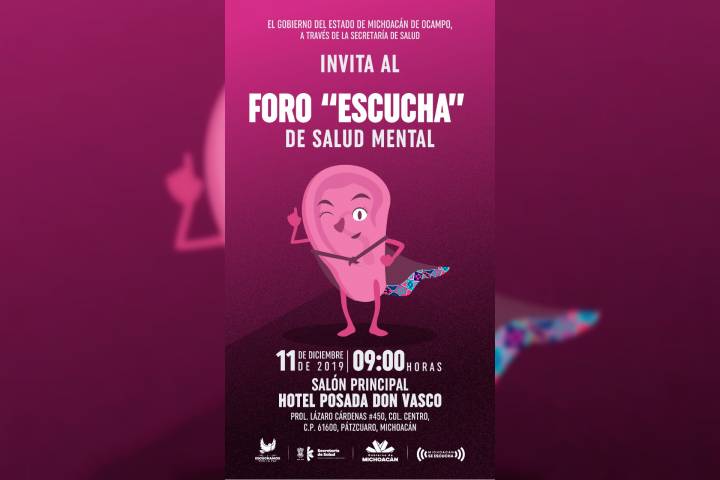 NOTICIAS 10/12/2019Todo listo para el quinto Foro "Escucha", este miércoles 11 en Pátzcuaro: SSMTodo se encuentra listo para celebrar este 11 de diciembre, en el municipio de Pátzcuaro, el 5to. Foro Regional "Escucha", el cual forma parte de la Estrategia Integral de Salud Mental, que impulsa el Gobierno del Estado en pro del bienestar de las y los michoacanos.