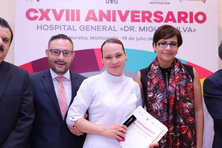 NOTICIAS 19/07/2019A 118 años de su fundaciónA 118 años de trabajo, brindar servicios de salud con calidad a las y los michoacanos, es la premisa más importante en el Hospital General "Dr. Miguel Silva", cuyos médicos, especialistas y demás personal, de corazón, ponen su mayor esfuerzo para salvar la vida de los pacientes, resaltó la secretaria de Salud en Michoacán (SSM), Diana Carpio Ríos, en el marco del acto de aniversario de este nosocomio, en el que se reconoció a 45 trabajad... Ver más...