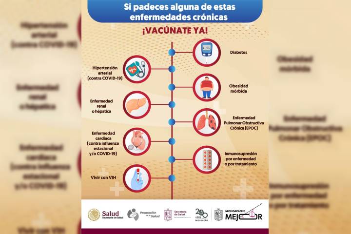 NOTICIAS 31/01/2025Si tienes alguna de estas enfermedades debes vacunarte contra la influenza: SSMLa Secretaría de Salud de Michoacán (SSM) hace un llamado a todas las personas con comorbilidades a vacunarse contra la influenza para proteger su salud y la de sus seres queridos durante la temporada invernal 2024-2025.