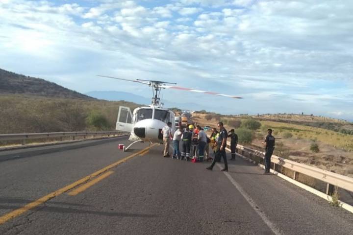 Para el servicio, derivado de un accidente vehicular -registrado la tarde del sábado-, la Dirección de Servicios Aéreos del Gobierno del Estado, dispuso de una aeronave equipada para el cuidado prehospitalario para atender la emergencia.