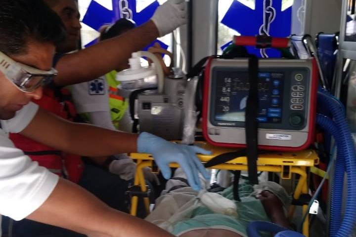 De acuerdo al reporte médico, el paciente de 29 años, presenta un traumatismo craneoencefálico y trauma abdominal, por lo que se solicitó una aeronave a la Dirección de Servicios Aéreos del Gobierno del Estado.
