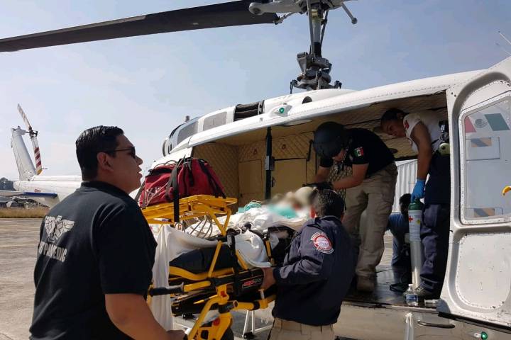 De acuerdo al reporte médico, el paciente presenta una lesión grave por un accidente vehicular, por lo cual se solicitó el apoyo de la Dirección de Servicios Aéreos del Gobierno Estado.