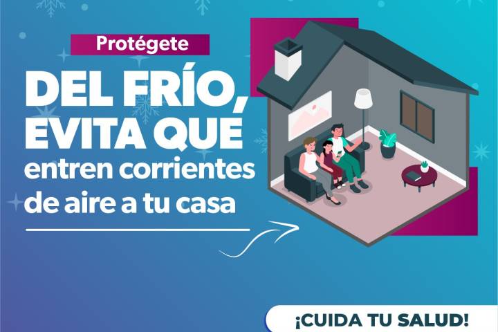 NOTICIAS 08/01/2025Sigue estos consejos de la SSM para protegerte del frío en tu hogarPara prevenir las enfermedades respiratorias causadas por las corrientes de aire, la Secretaría de Salud de Michoacán (SSM) te dice cómo protegerte del frío en el interior de tu hogar, evitando las fugas de calor, tapando los orificios y rendijas de puertas, ventanas y paredes.