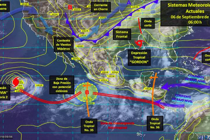 Indicó que condiciones arriba señalas serán propiciadas por la muy activa onda tropical número 35 asociada a una zona de inestabilidad con potencial ciclónico al sur de su eje, frente a las costas de Jalisco, por l... Ver más...