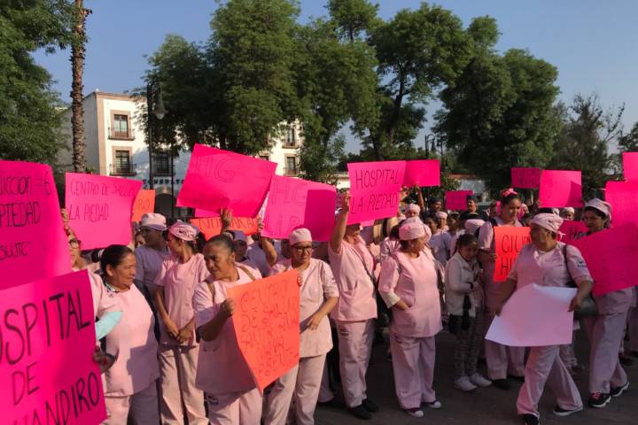 Trabajadores de la empresa Mantenimiento Industrial e Institucional Integrado S.A de C.V., se manifestaron este lunes de la plaza del Caballito (Jardín Morelos) a la Secretaría de Salud para exigir el pago pendiente por los servicios prestados en los periodos 2015 y 2016 por la cantidad de más de 23 millones de pesos.