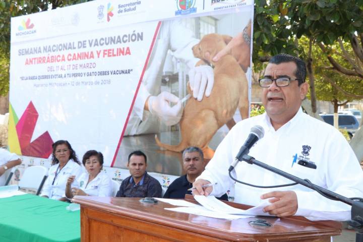 NOTICIAS 12/03/2018Aplicará SSM 744 mil dosis durante la Semana de Vacunación AntirrábicaPara reforzar las acciones de protección contra la rabia a perros y gatos, lo que también incide en el cuidado de la salud de las y los michoacanos, este lunes, el titular de la Secretaría de Salud de Michoacán (SSM) Elías Ibarra Torres, arrancó en el municipio de Huetamo la Semana Nacional de Vacunación Antirrábica Canina y Felina 2018.