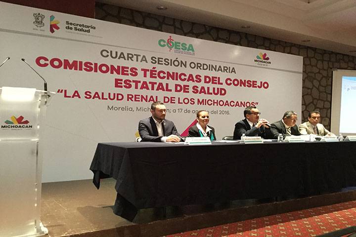 NOTICIAS 17/08/2016La salud renal de las y los michoacanos, prioridad de la SSM Bajo el lema "La salud renal de los michoacanos", se llevó a cabo en Morelia la Cuarta Sesión Ordinaria de Comisiones Técnicas del Consejo Estatal de Salud (Coesa), en la que el personal del sector salud presentó los avances de los que serán los nuevos modelos de atención médica y preventiva que habrán de implementarse en el estado para evitar la insuficiencia renal crónica, la muerte materna, los riesgos pre hospitalarios y sanitarios.