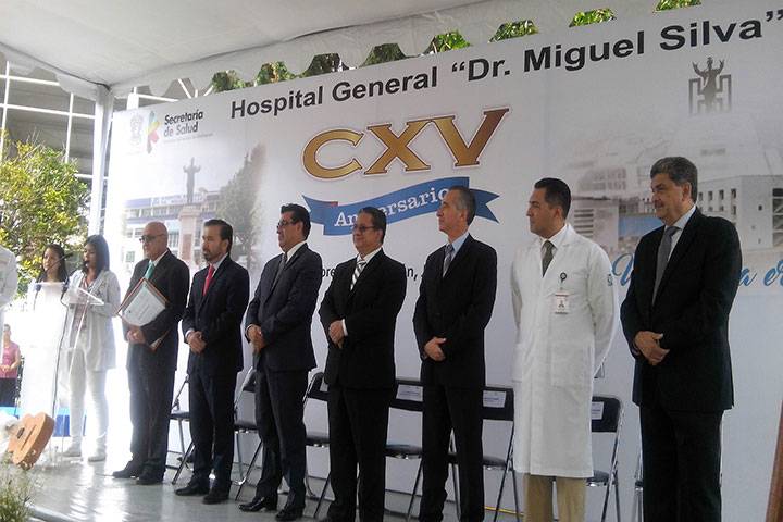 NOTICIAS 16/07/2016El Hospital General "Dr. Miguel Silva", cumple 115 años Impregnarnos del alivio de los enfermos que ya sanaron es una de las premisas de los médicos del Hospital General "Dr. Miguel Silva", quiénes trasmiten toda su bondad y cariño para salvar la vida de sus pacientes, así lo puntualizó el subsecretario y director de los Servicios de Salud de la Secretaría de Salud en Michoacán (SSM), Rafael García Tinajero Pérez durante el festejo del 115 aniversario del nosocomio.
