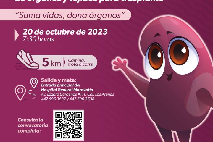 NOTICIAS 21/09/2024SSM anuncia tercera carrera atlética por la donación de órganosEl próximo 20 de octubre la Secretaría de Salud de Michoacán (SSM) llevará a cabo por tercera ocasión su evento atlético de convivencia Camina, trota o corre, a favor de la donación de órganos y tejidos para trasplante, en el municipio de Maravatío.