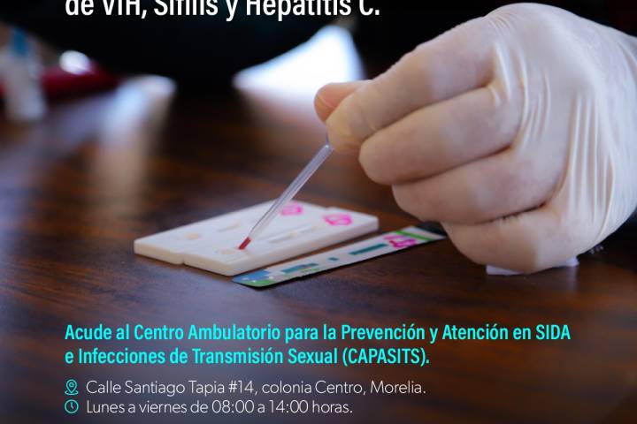 NOTICIAS 23/08/2024Realiza SSM pruebas rápidas y gratuitas de hepatitis C, VIH y sífilisDurante la Jornada Nacional de Salud Pública 2024, que se realiza del 12 al 23 de agosto, la Secretaría de Salud de Michoacán (SSM) promueve la prevención y detección oportuna de infecciones como la hepatitis C, el Virus de Inmunodeficiencia Humana (VIH) y sífilis, con pruebas gratuitas en los 364 centros de salud del estado.