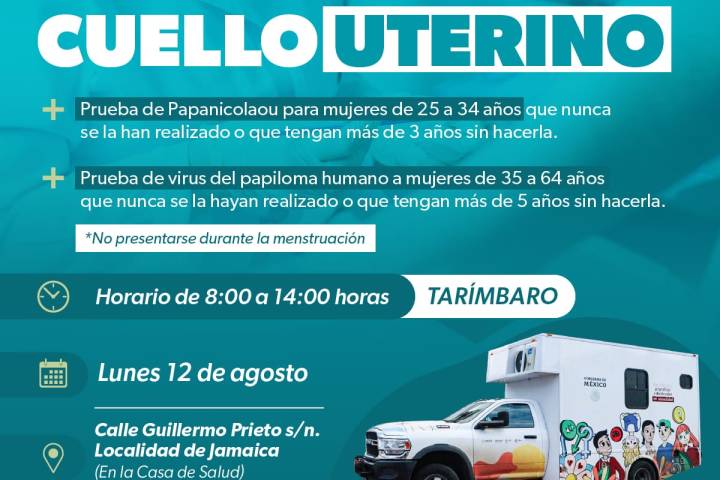 NOTICIAS 12/08/2024A partir de estas edades las mujeres deben realizar pruebas de Papanicolaou y VPH La Secretaría de Salud de Michoacán (SSM) invita a las mujeres mayores de 25 años a realizarse la prueba de detección del Virus del Papiloma Humano (VHP) y el estudio de Papanicolaou a partir de los 35 años, en el centro de salud más cercano.