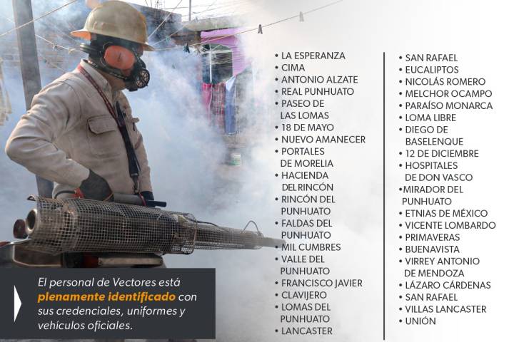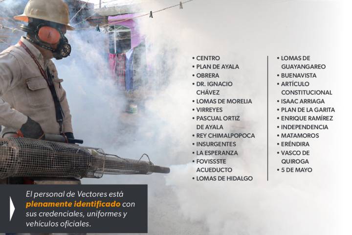 Personal del Departamento de Vectores, plenamente acreditado con sus identificaciones oficiales y uniformes, recorrerá a partir de las 5:00 horas las colonias Centro, Plan de Ayala, Obrera, Dr. Ignacio Chávez, Lomas de Mor... Ver más...