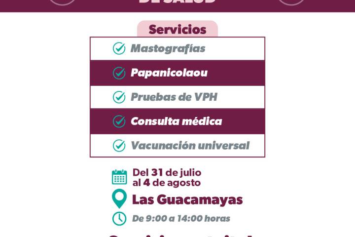 Se podrán solicitar consultas de nutrición y salud bucal, asà como vacunación universal, detecciones de diabetes e hipertensión y mastografÃas, sin costo alguno, sin importar si la persona cuenta con seguridad soc... Ver más...