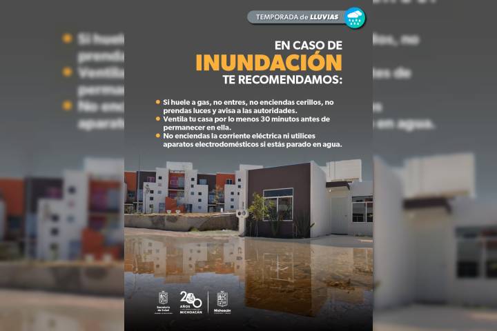 NOTICIAS 17/07/2024Emite SSM recomendaciones en caso de inundacionesTras la tromba registrada esta tarde en Morelia, la Secretaría de Salud de Michoacán (SSM) emite las siguientes recomendaciones en caso de inundación en tu vivienda.