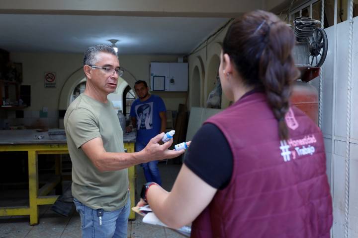 Desde el 27 de junio se han visitado 46 mil 200 viviendas para eliminar de manera adecuada objetos inservibles como llantas, botellas, tinas, cubetas, muebles, pues en ellos puede reproducirse el mosco Aedes aegypti, transmisor d... Ver más...
