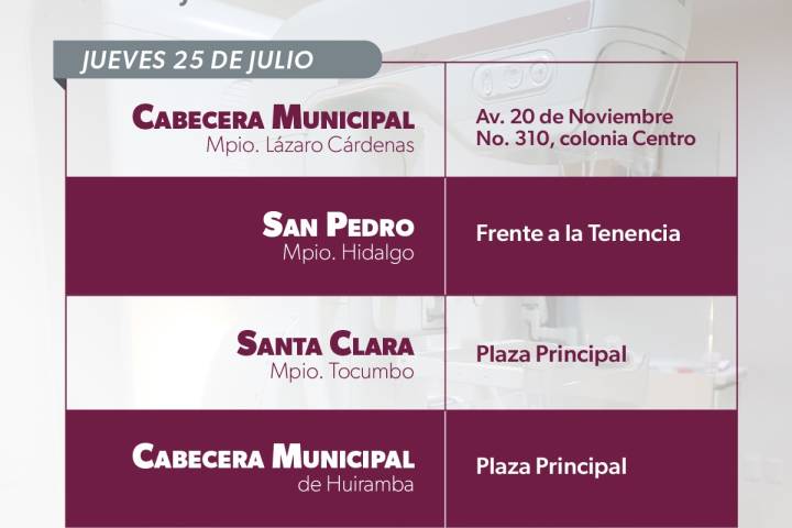 Del 22 al 26 de julio una unidad estará atendiendo el municipio de Lázaro Cárdenas y sus localidades de Buenos Aires y el Habillal