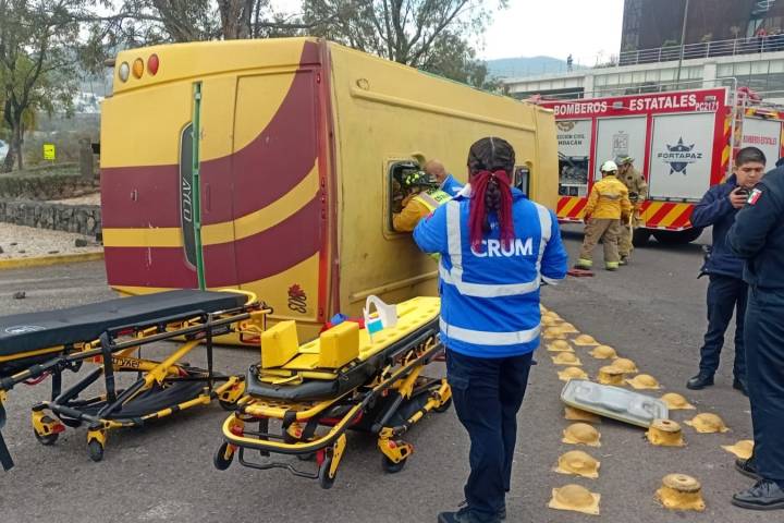 NOTICIAS 20/01/2026Brinda CRUM atención a lesionados tras accidente de camión en Morelia: SSMEl Centro Regulador de Urgencias Médicas (CRUM), de la Secretaría de Salud de Michoacán (SSM), desplegó un operativo de atención para asistir a las personas lesionadas tras la volcadura de un camión de pasajeros registrada este martes en la glorieta de Tres Marías, en la ciudad de Morelia.