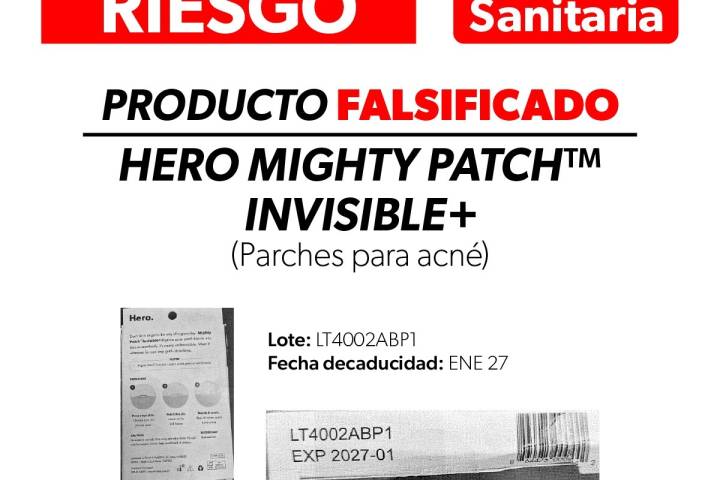NOTICIAS 27/01/2026Cofepris emite alerta sanitaria por comercialización ilegal de parches para acnéLa Comisión Federal para la Protección contra Riesgos Sanitarios (Cofepris), a través de la Secretaría de Salud de Michoacán (SSM), informa a la población sobre la alerta sanitaria por la comercialización ilegal del producto Hero MIGHTY PATCH™️ Invisible+ (Parches para acné), en su presentación de 39 parches en caja de cartón, el cual no cumple con la normatividad sanitaria vigente y representa un riesgo para la salud.