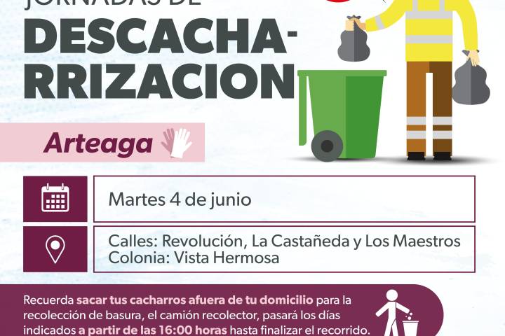 NOTICIAS 04/06/2024Para prevenir el dengue, SSM recolectará cacharros en Arteaga Con el propósito de prevenir el dengue, la Secretaría de Salud de Michoacán (SSM) continúa con su campaña de eliminación de cacharros y este martes 4 de junio recolectará artículos en desuso en el municipio de Arteaga.