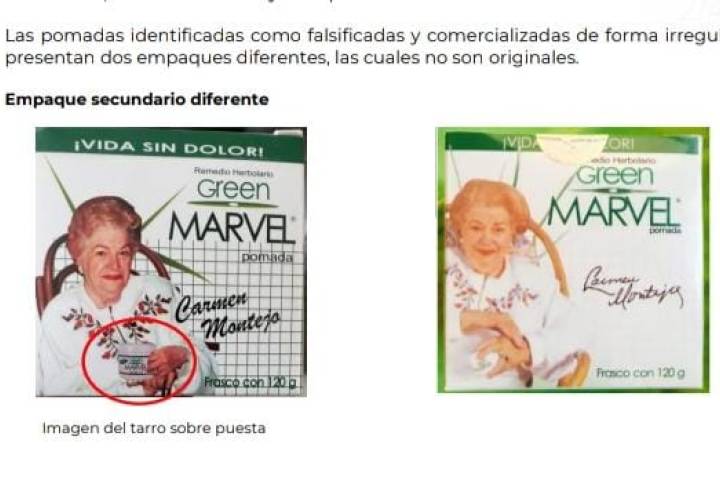 NOTICIAS 07/06/2024Alerta Cofepris sobre falsificación y comercialización irregular de pomadas Green MavelLa Comisión Federal para la Protección contra Riesgos Sanitarios (Cofepris), a través de la Secretaría de Salud de Michoacán (SSM), alerta a la población sobre la falsificación y comercialización irregular de la Pomada Green MARVEL®️ y Crema Green MARVEL®️, ya que la empresa LANSTEINER SCIENTIFIC S.A. DE C.V. notificó que ya no elaboran ni comercializan los ungüentos en cuestión desde 2013.