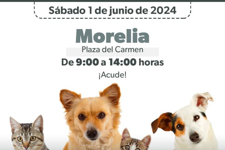 NOTICIAS 31/05/2024Protege a tus mascotas de la rabia; SSM vacunará este sábado en Morelia Si vives en Morelia y tienes mascotas, aprovecha la oportunidad de vacunarlas contra la rabia el sábado 1 de junio, en la jornada de inmunización gratuita que la Secretaría de Salud de Michoacán (SSM) realizará en la plaza del Carmen del Centro Histórico.