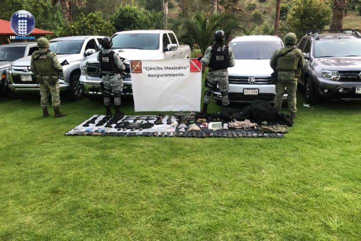 NOTICIAS 29/01/2022Tras agresión armada, Ejército detiene a 8 personas y asegura arsenalLuego de ser agredidos con armas de fuego por un grupo de civiles en una zona boscosa de Tacámbaro, elementos del Ejército Mexicano lograron la detención de 8 presuntos delincuentes y el aseguramiento de un arsenal, así como 6 vehículos y droga.