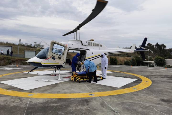 NOTICIAS 31/10/2021En acción conjunta SSP y SSM apoyan con traslado aéreo de una mujer enferma Una acción conjunta emprendida por Servicios Aéreos de la Secretaria de Seguridad Pública (SSP) y el personal médico de la Secretaria de Salud (SSM) permitió el pronto traslado vía aérea del municipio de Arteaga a Morelia, de una persona con complicaciones respiratorias para su atención médica inmediata.